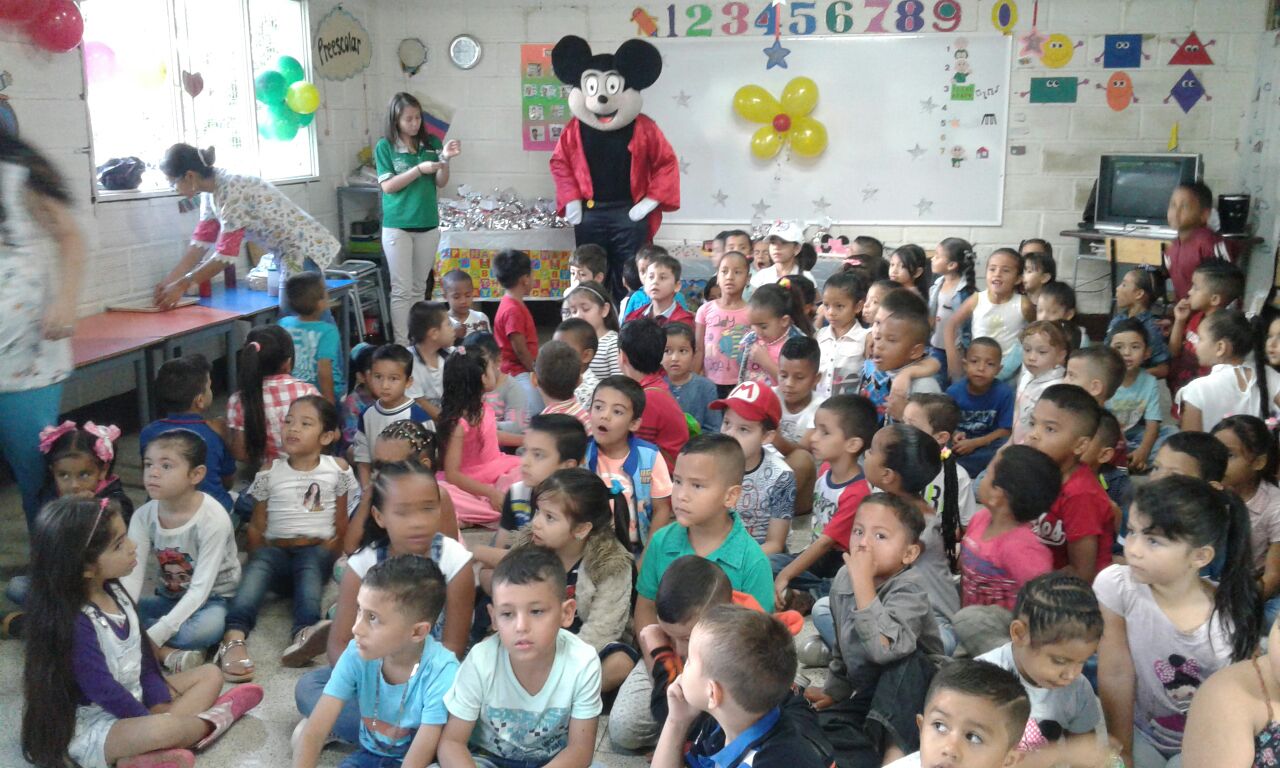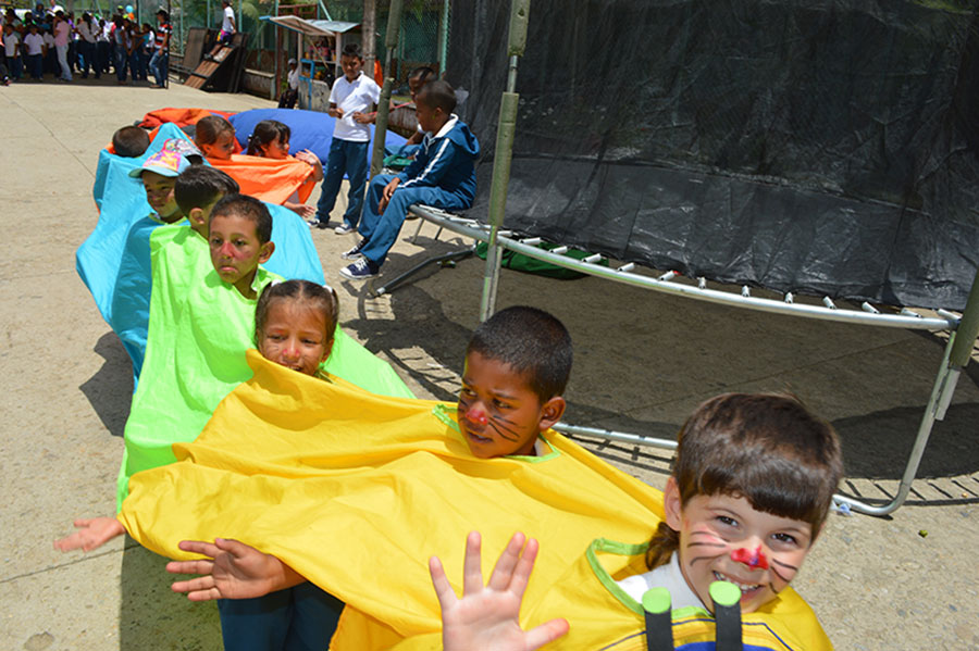 tarima o escenario, sonido amplificado con cobertura según la cantidad de los niños, 1 micrófono. RIN RIN aporta USB con la música especializada.